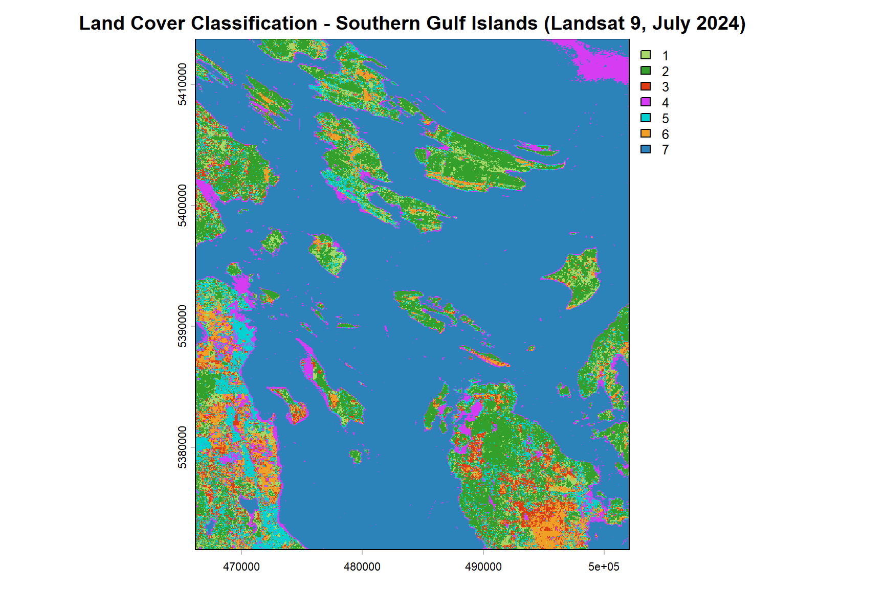 main = "Land Cover Classification - Southern Gulf Islands (Landsat 9, July 2024)")