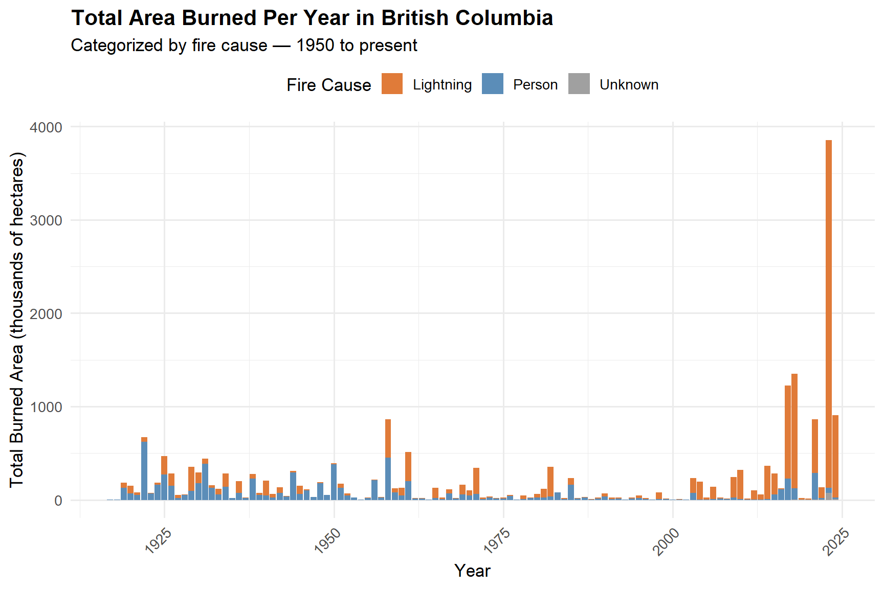 library(tidyr) # Data tidyingHistorical Wildfire Context in British Columbia